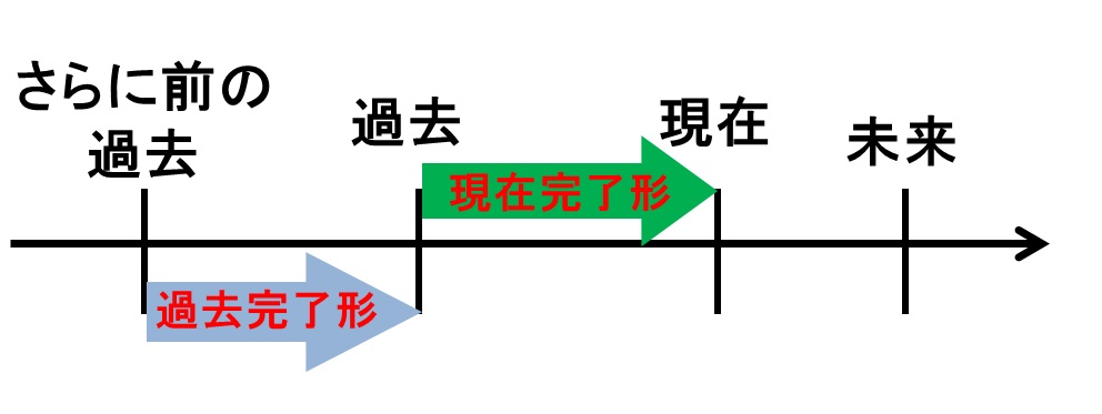 現在完了形と過去完了形のイメージを図で表すと下図のようになります。